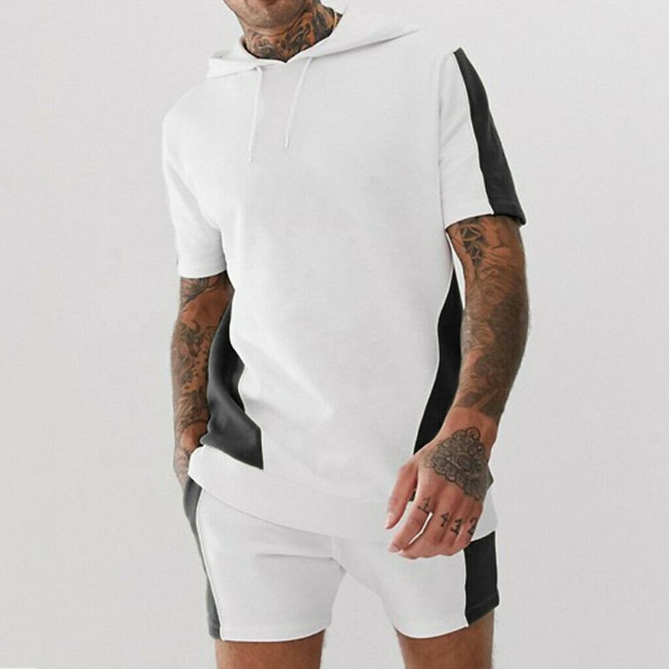 Custom Made Men Jogging Twin Sets / Contrast Side Stripes Short Sleeve T Shirt and Short Sets