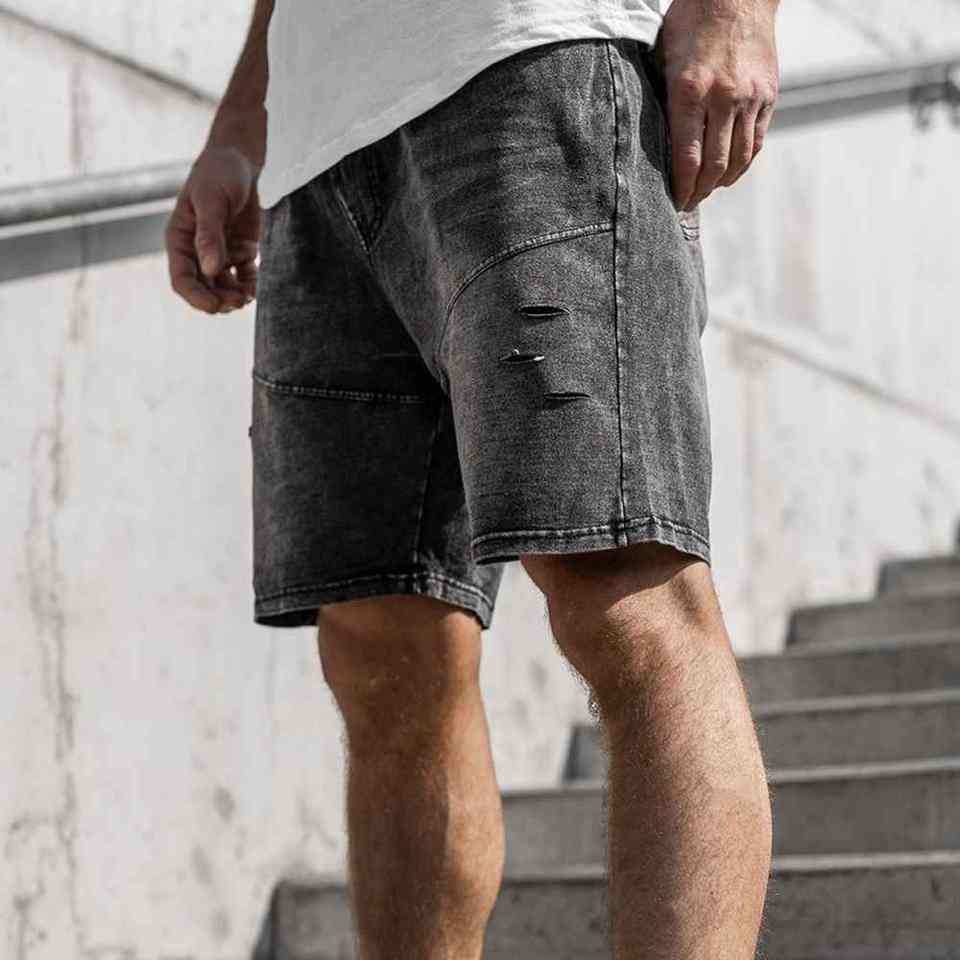 Custom Made Men's Acid Washed Canvas Straight Jeans Shorts Breathable 100% Cotton Mid Waist Lightweight Streetwear Casual Style