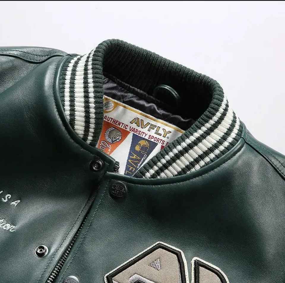 Custom Made Men's Genuine Leather Bomber Jacket Spring Canvas Stand Zipper Embroidered Animal Pattern Plus Size Perfect Fit