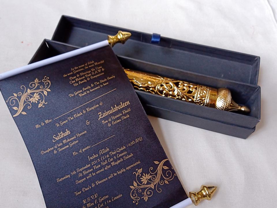 Custom Made Mini Scroll Invites With Foil Stamped Papers Available Blank and Without Print