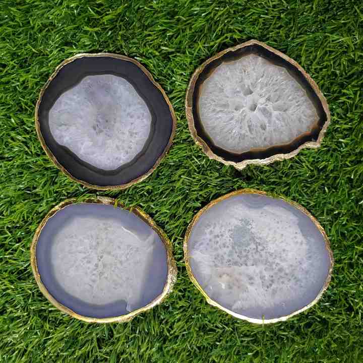 Custom-Made Natural Agate Chakra Coasters with Painted Edges in Folk Art Style for Home Decor & Gift Boutiques for Resale