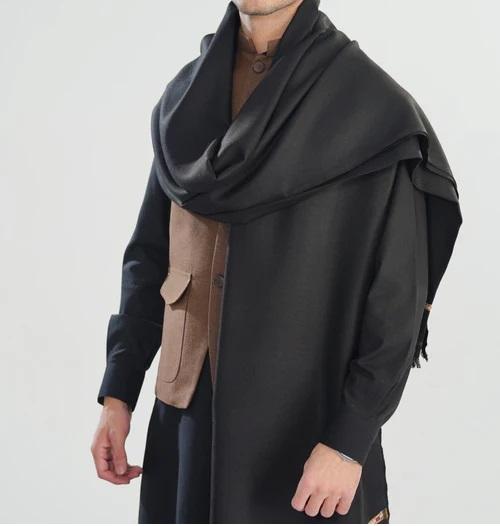 Custom Made Pakistani Mens Patoo Pashtun Kashmiri Pashmina Shawls Black Color Groom Wedding Party Outerwear Head Winter Shawls