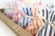 Custom Made Paper Bags with White Satin Ribbon Handles Ideal for Promotions and Give Aways