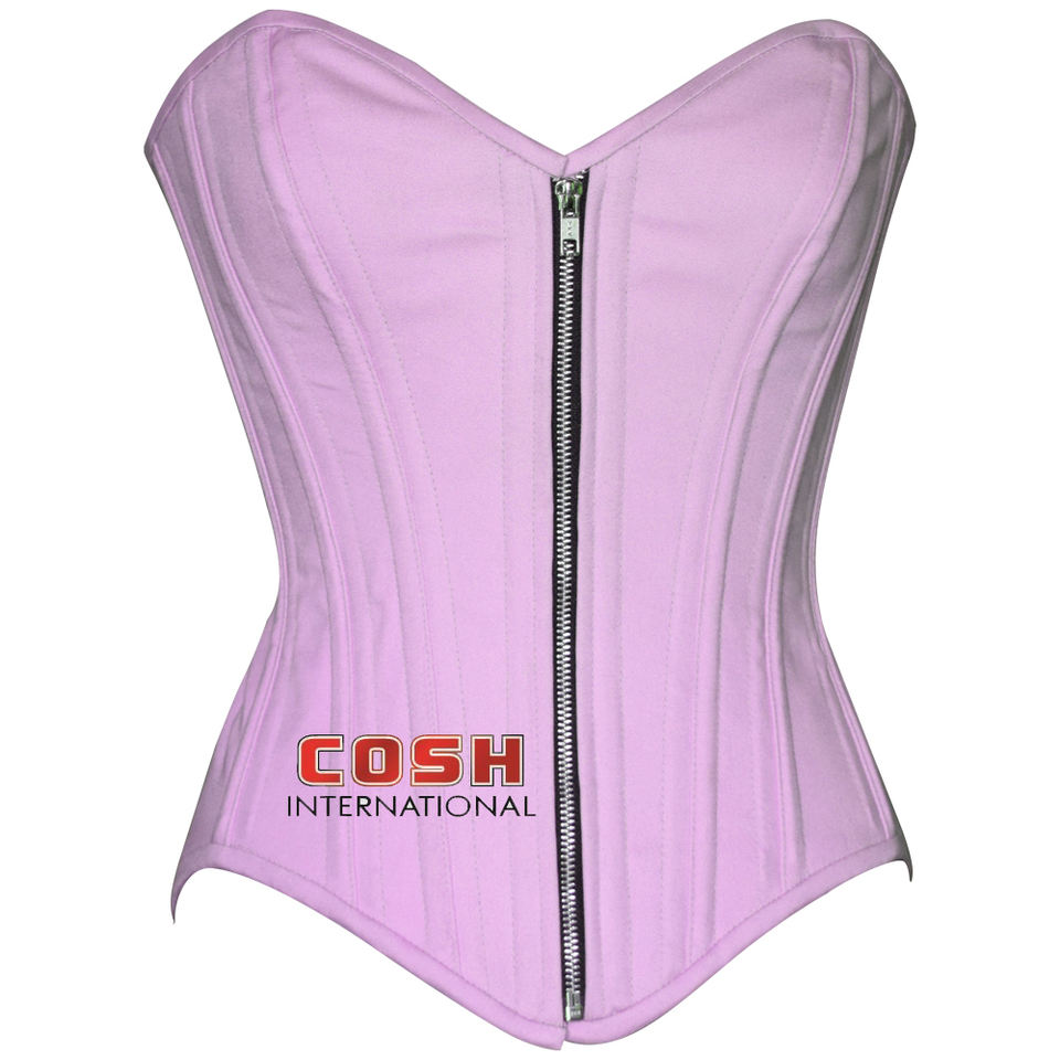 Custom Made Pink Cotton Corset Overbust Steel Boned Curvy Waist Slimming Design Firm Front Zipper Back Laced Up Corset Supplier