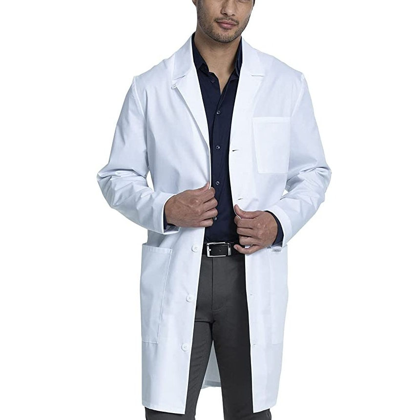 Custom Made Plain White Color Doctor Long Lab Coat Uniform 100% Organic Cotton Doctor Lab Coat for Males