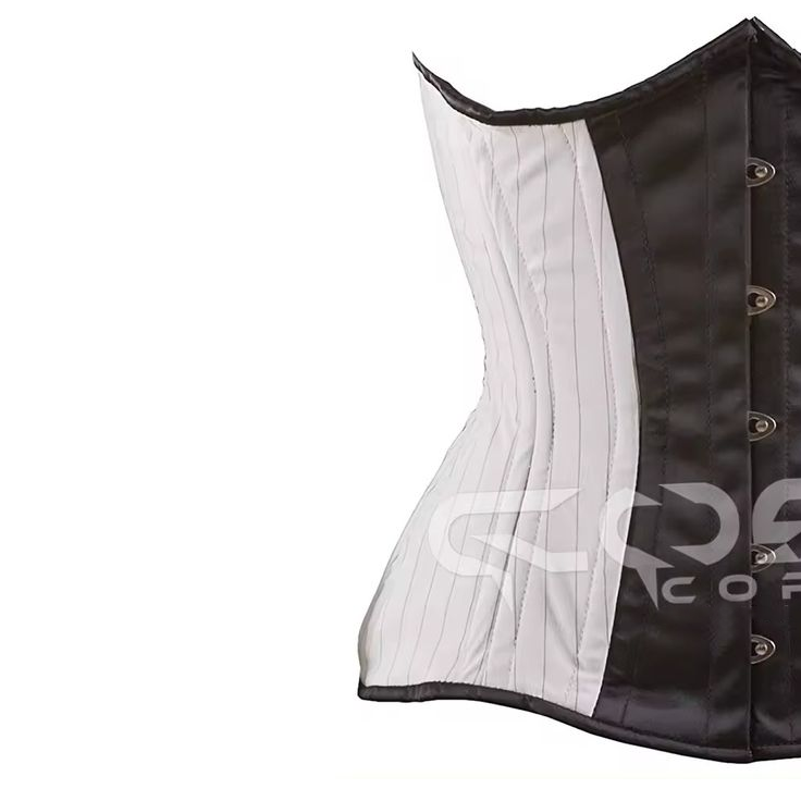Custom Made Plus Size Underbust Steel Boned Waist Training Two Tone Black White Satin Wider Hips Corset With Satin Trim