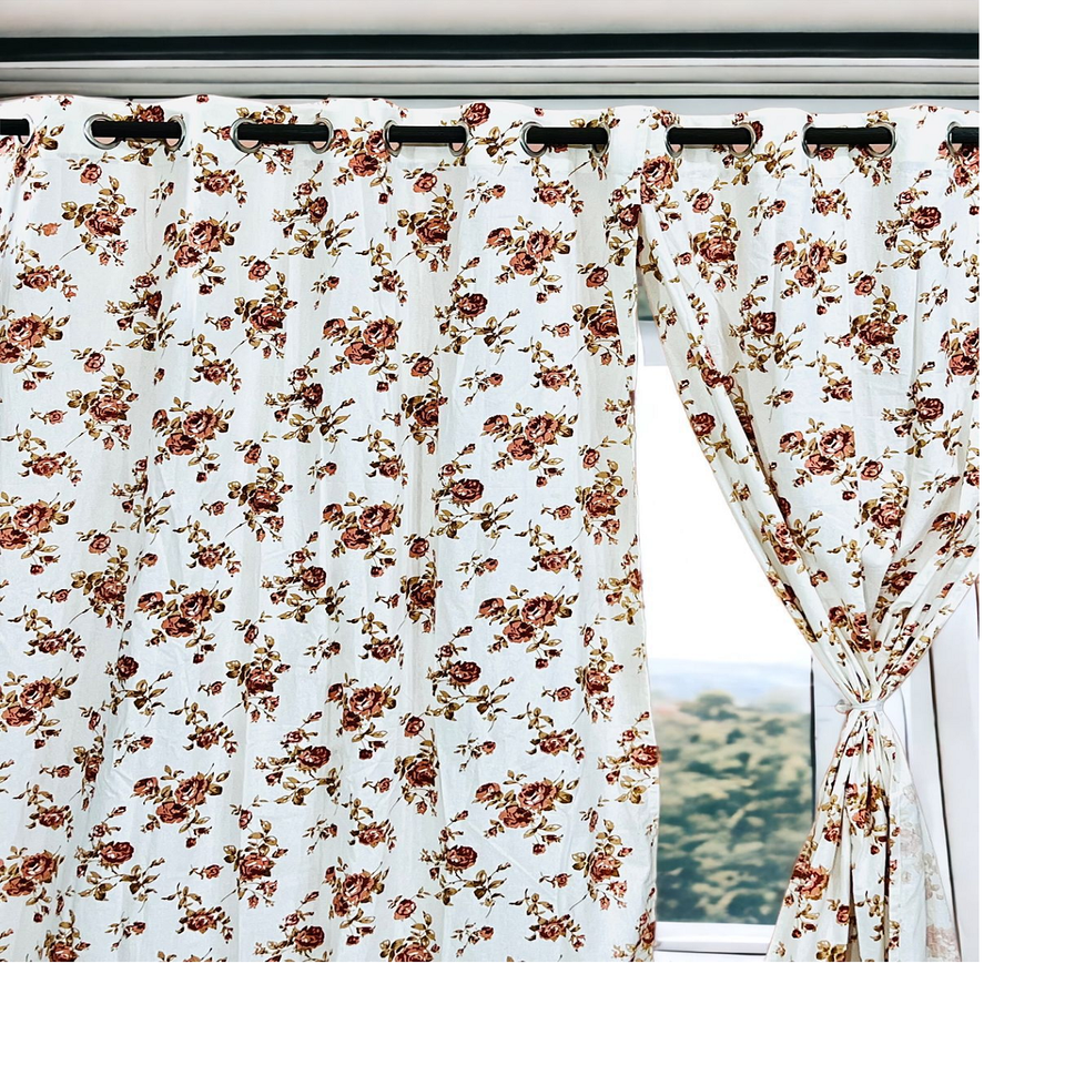 Custom Made Printed Cotton Curtains Available in Different Sizes & in Different Price Range in Copper Coloured Flower Print.