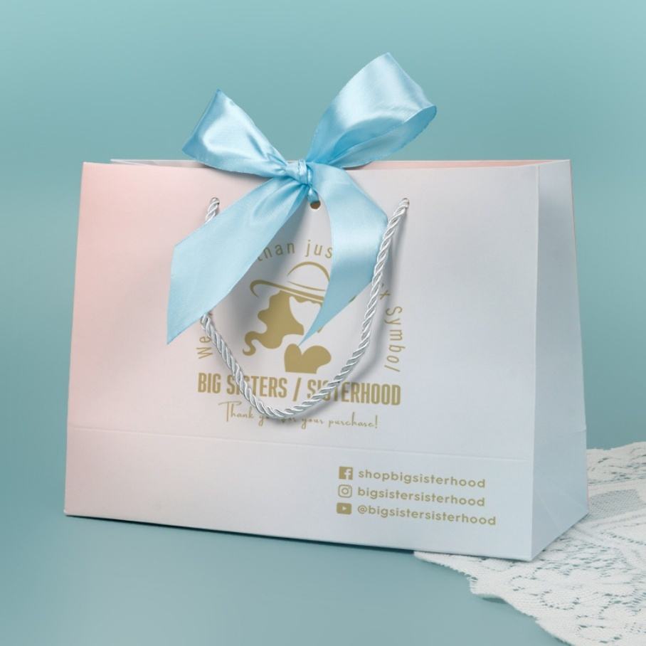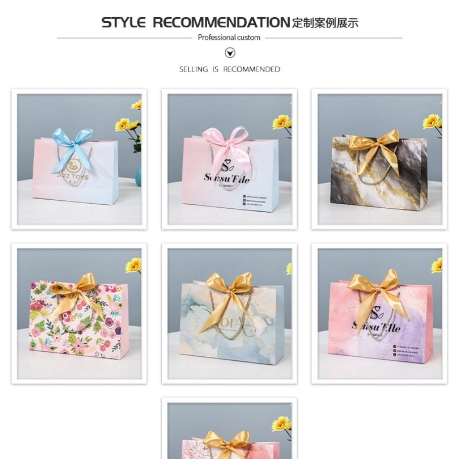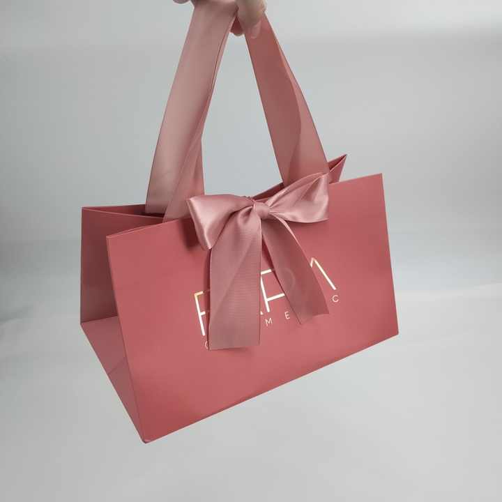 Custom Made Printed Logo Jewelry Packaging Kraft Shopping Paper Bag With Ribbon Handles Gold Foil Pink Gift Paper Bag
