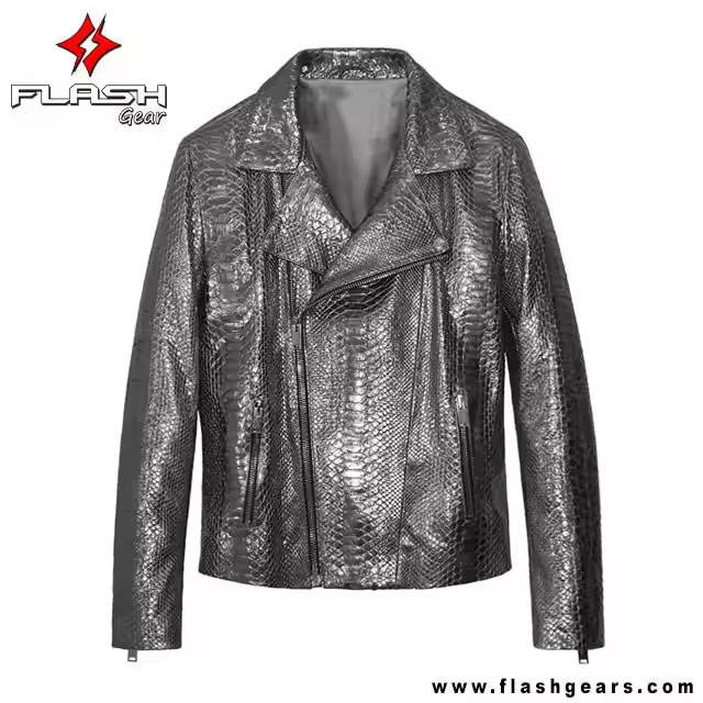 Custom Made Python Leather Silver Lamb Chiodo Jacket Winter Season Leather Jacket Best Protective Leather Jacket Shining