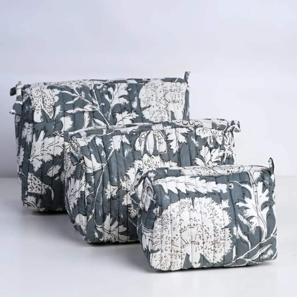 Custom Made Quilted Cotton 3-in-1 Pouch Set with Zippers for Boutique Retail & Gift Stores Ethnic Print Kantha Quilted Pouches