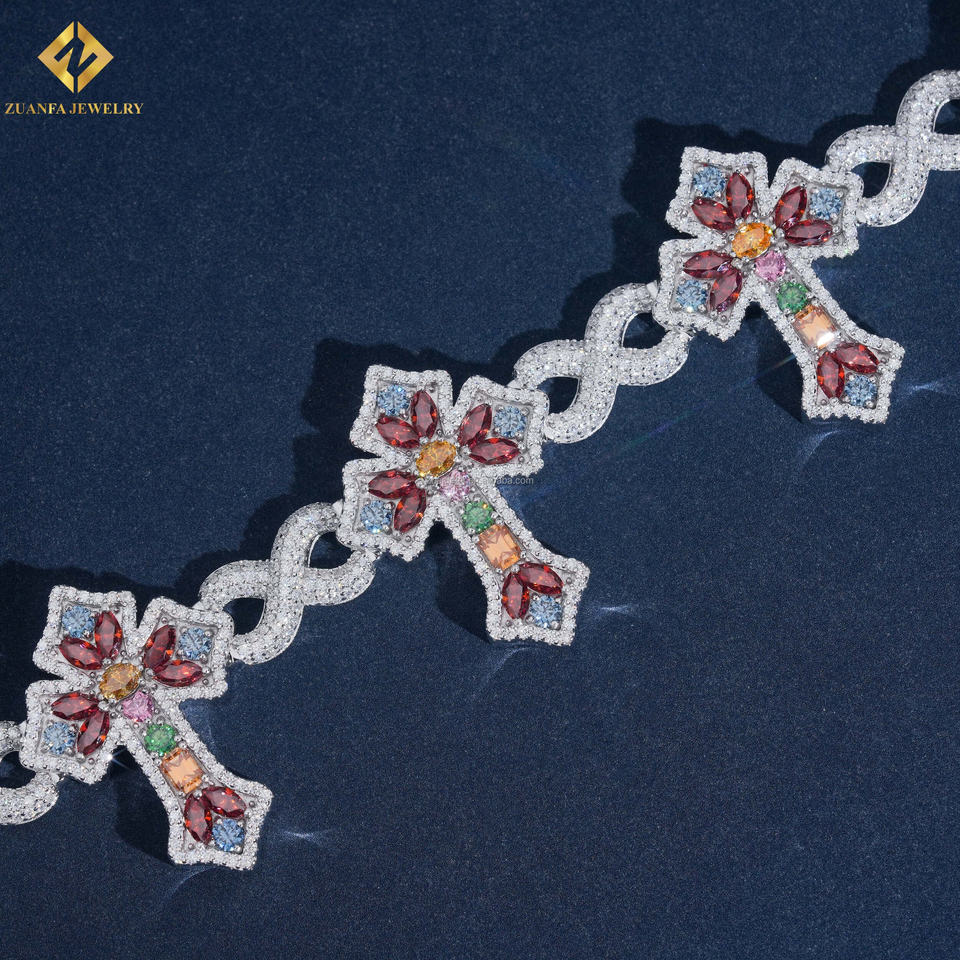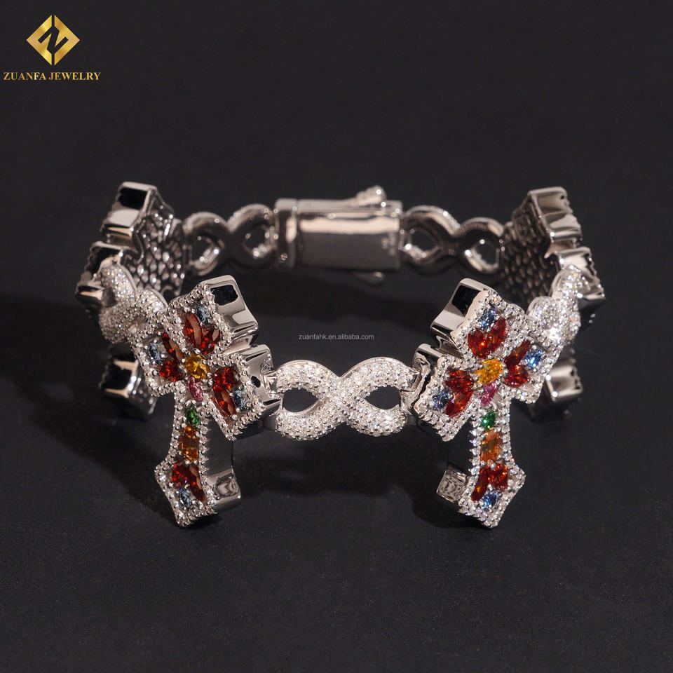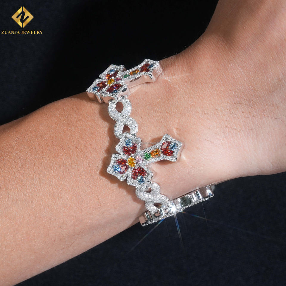 Custom Made Rapper Multi Color Moissanite Cuban Bracelet Sterling Silver 925 Luxury Hip Hop Cuban Infinity Bracelet Men Jewelry