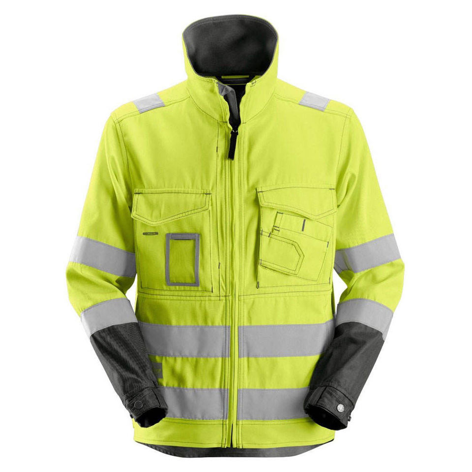 Custom Made Safety Jacket Reflective Stripes Bright Full Zip Front Utility Pockets Roadway Construction Safety Gear
