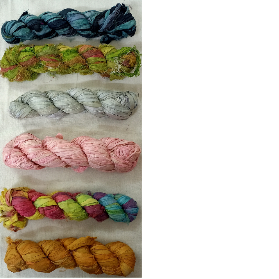 Custom Made Sari Silk Ribbons Pastel Bright Multi Colors for Yarn Fiber Artists 100 Gram Skeins Embroidered Dots for Hats