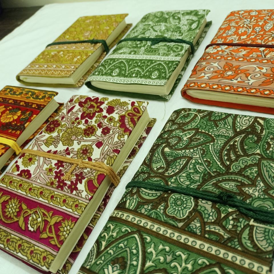 Custom Made Spiral Bound PVC Printed Sari Fabric Covered Notebooks Made From Recycled Old Sarees Handmade Cotton Paper Pages