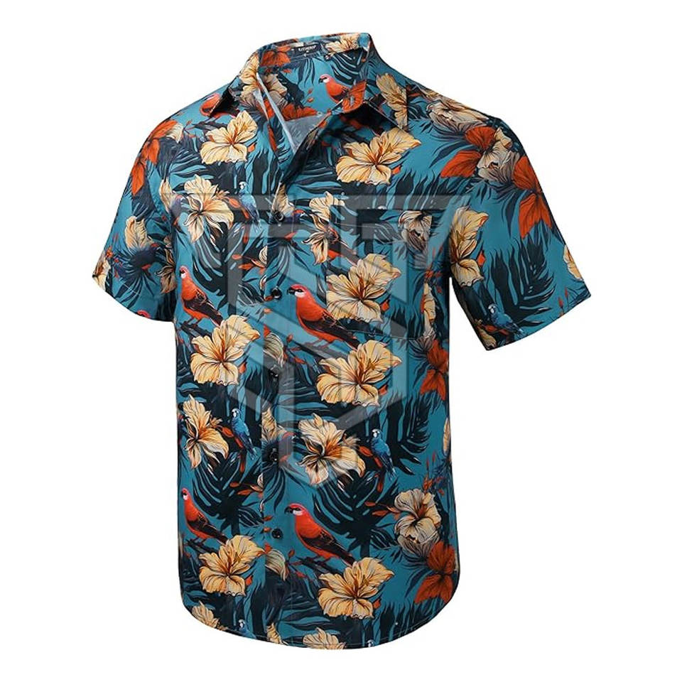 Custom Made Summer Wear Hawaiian T-Shirt 100% Cotton with Customized Logo Private Label for Sale