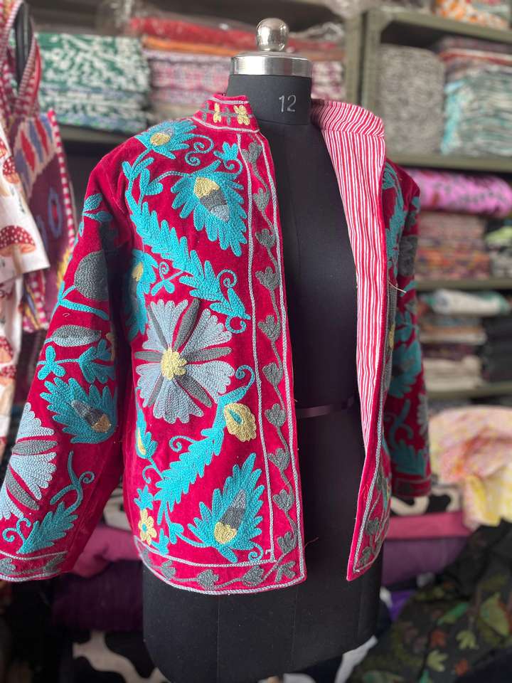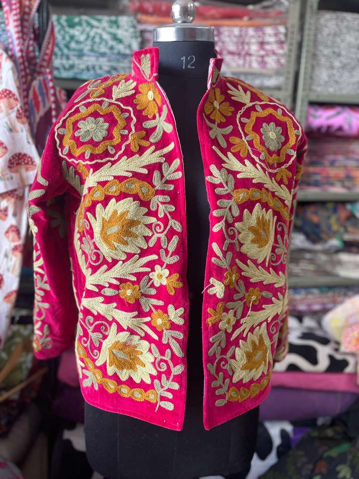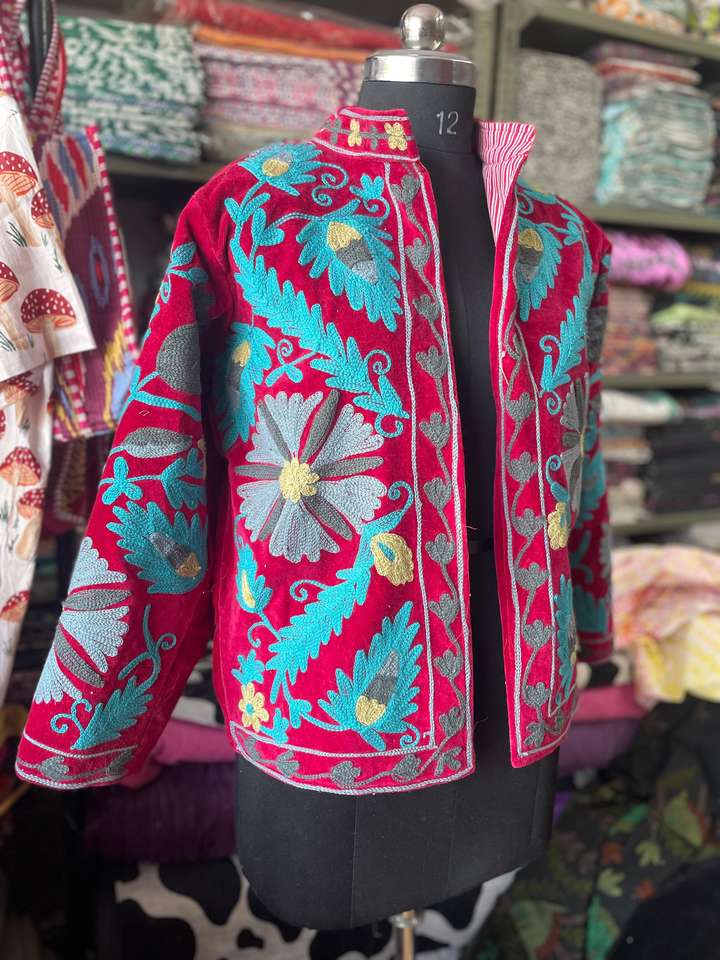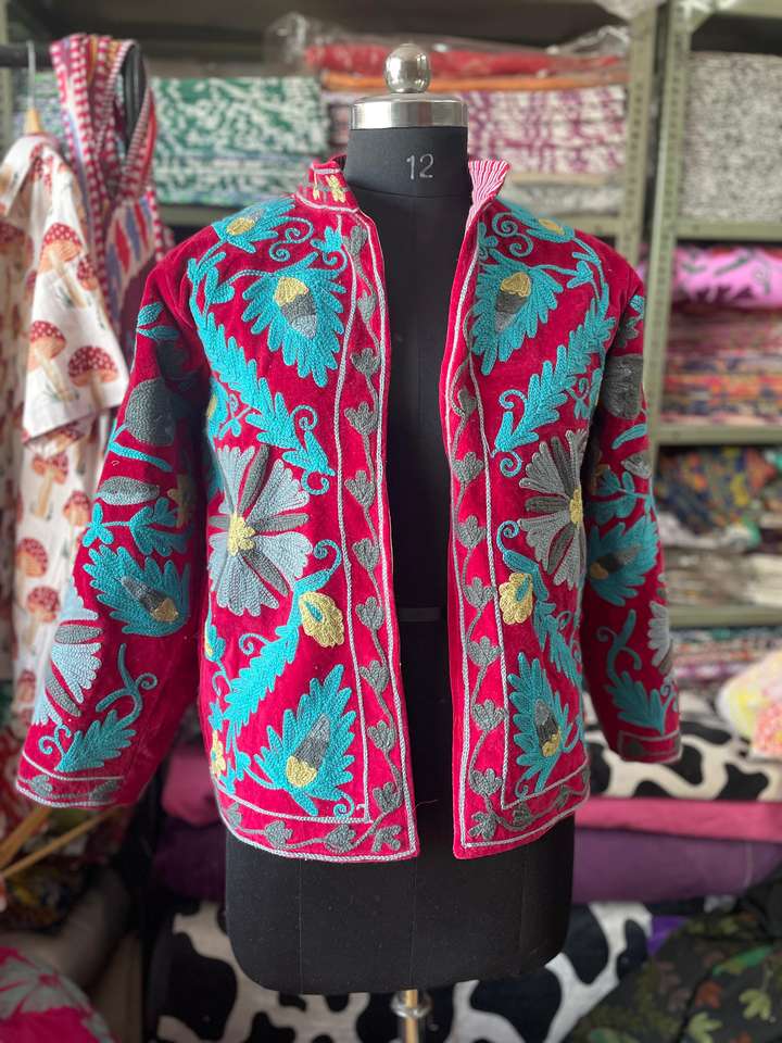 Custom Made Suzani Wool Embroidered Multi Colored Womens Jacket for Fashion Designers for Resale