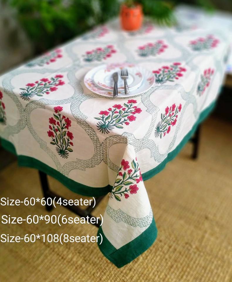Custom Made Textured Cotton Bright Table Covers in 4, 6 & 8 Seater for Summer Season in Geometric Border Design & Floral Print