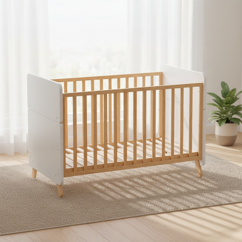 Custom-Made Top-Selling Logo Customizable Wooden Baby Cribs Convertible Growth Toddler Bed Height Adjustable