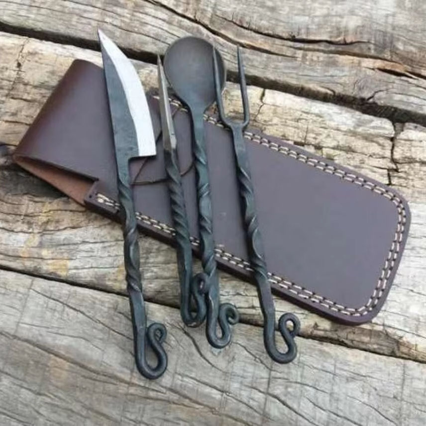 Custom Made Twisted Die Cast Engraved Antique Medieval Feasting Cutlery Set Modern Sculpture Viking Design Iron Craft From China