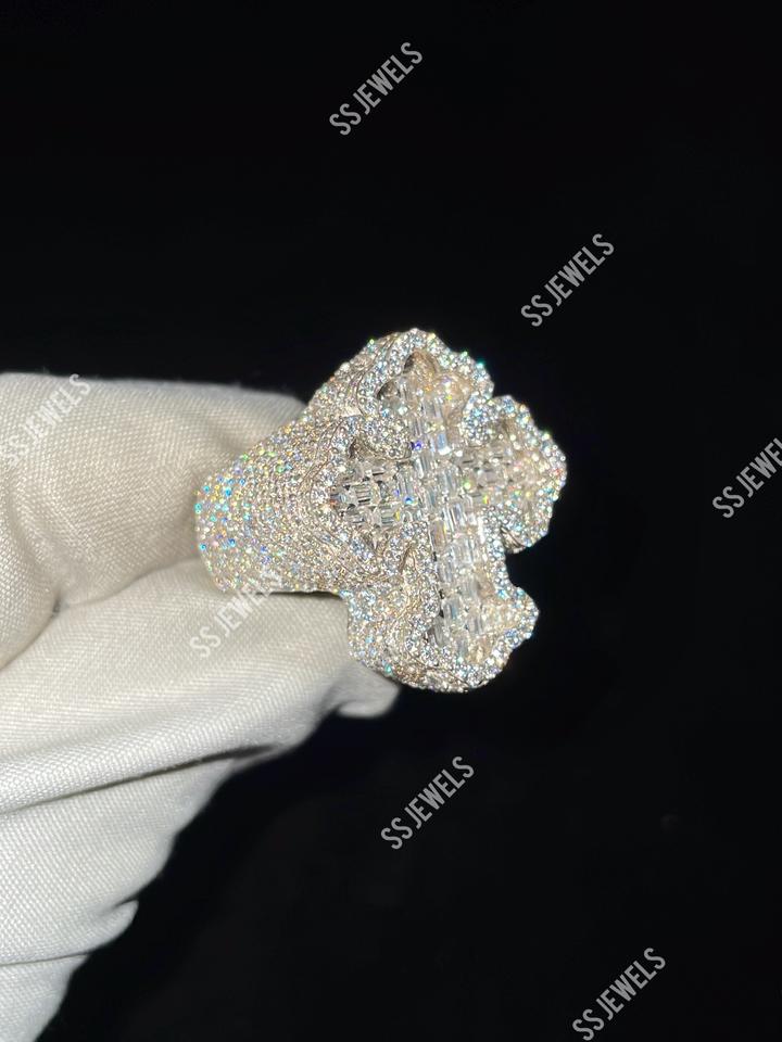 Custom Made VVS Lab Grown Diamond Jesus Cross Ring 925 Silver Gold Plated Iced Cross Brilliant Cut Bustdown Unisex Christmas