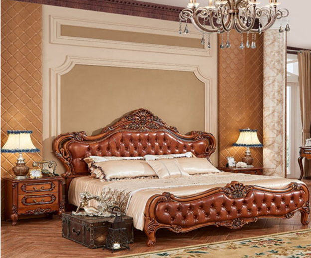 Custom Made Vintage Carved Bed Classic Solid Wood Master Bedroom Furniture Luxury Double Beds