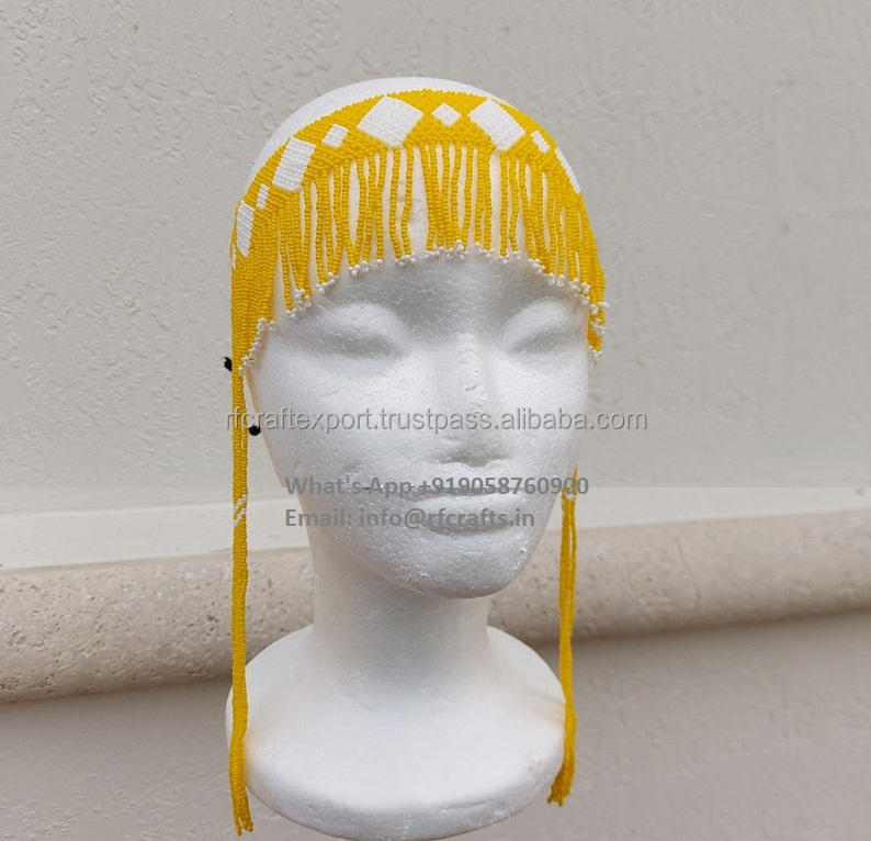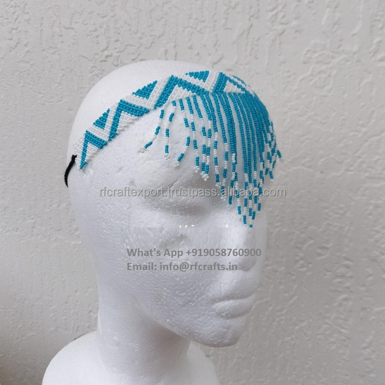 Custom Made Western Hat with Vibrant Multicolor Beaded Band Leather Ties and Traditional Aztec Tribal Style