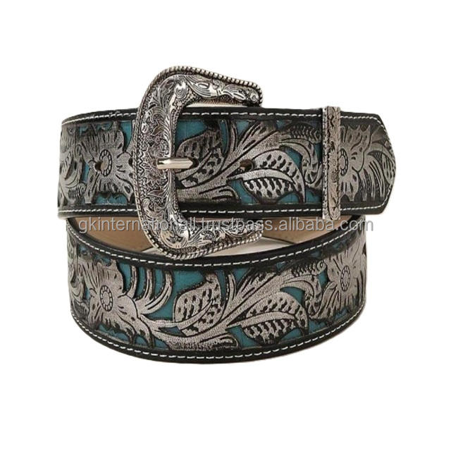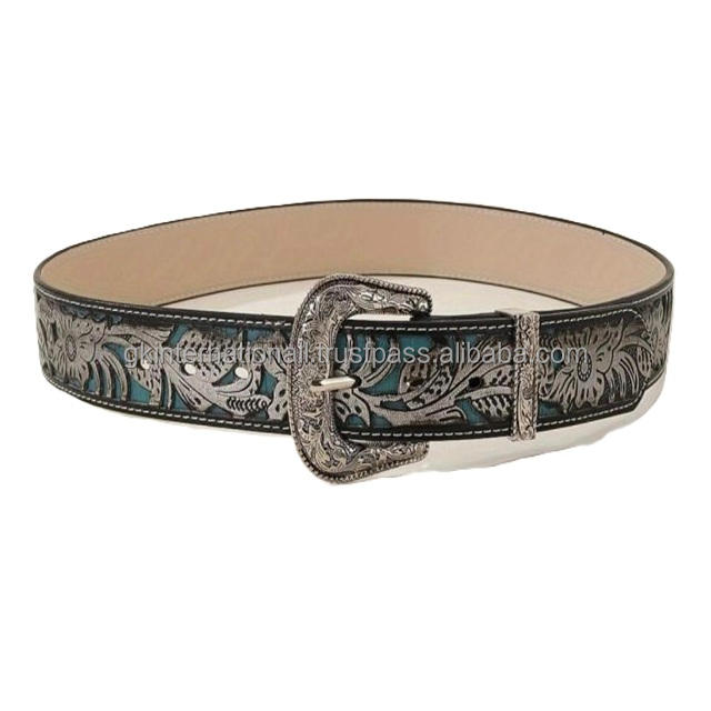 Custom Made Wide Western Belt for Men Floral Embossed Tooled Leather Casual Style with Alloy Snap Button for Buckle Change