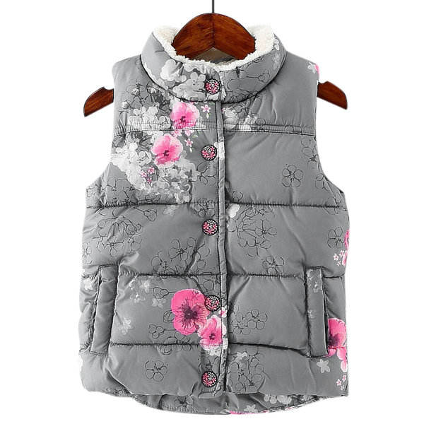 Custom Made Winter Vest for Boys Girls Children Clothing Warm Style Floral Print Vest for Kids 3-10 Years Old Zipper Waistcoat