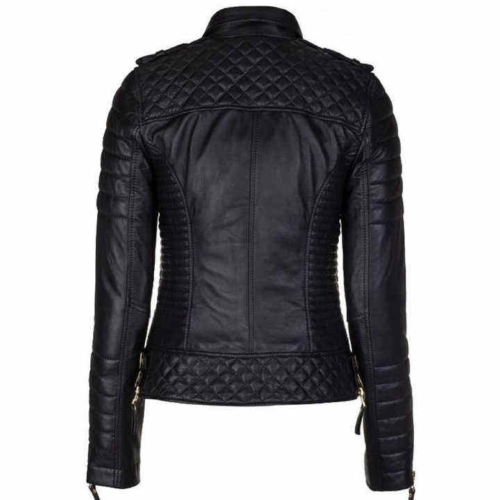 Custom Made Women's Biker Style Genuine Sheep Skin Leather Jacket Real Cowhide Slim Fit Fashion Winter Coat Cotton Zip Outerwear