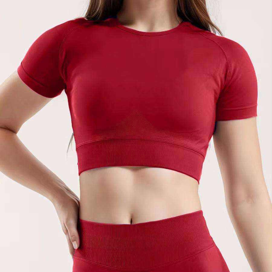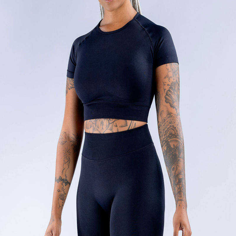 Custom Made Women Yoga Suits Quick Dry High Waist Leggings Short Sleeve Crop Top Gym Fitness Activewear Set
