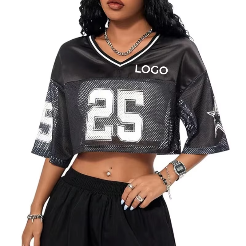 Custom Made Women's American Football Jersey Breathable 100% Polyester Plus Size Cropped Retro Jerseys with Short Sleeves