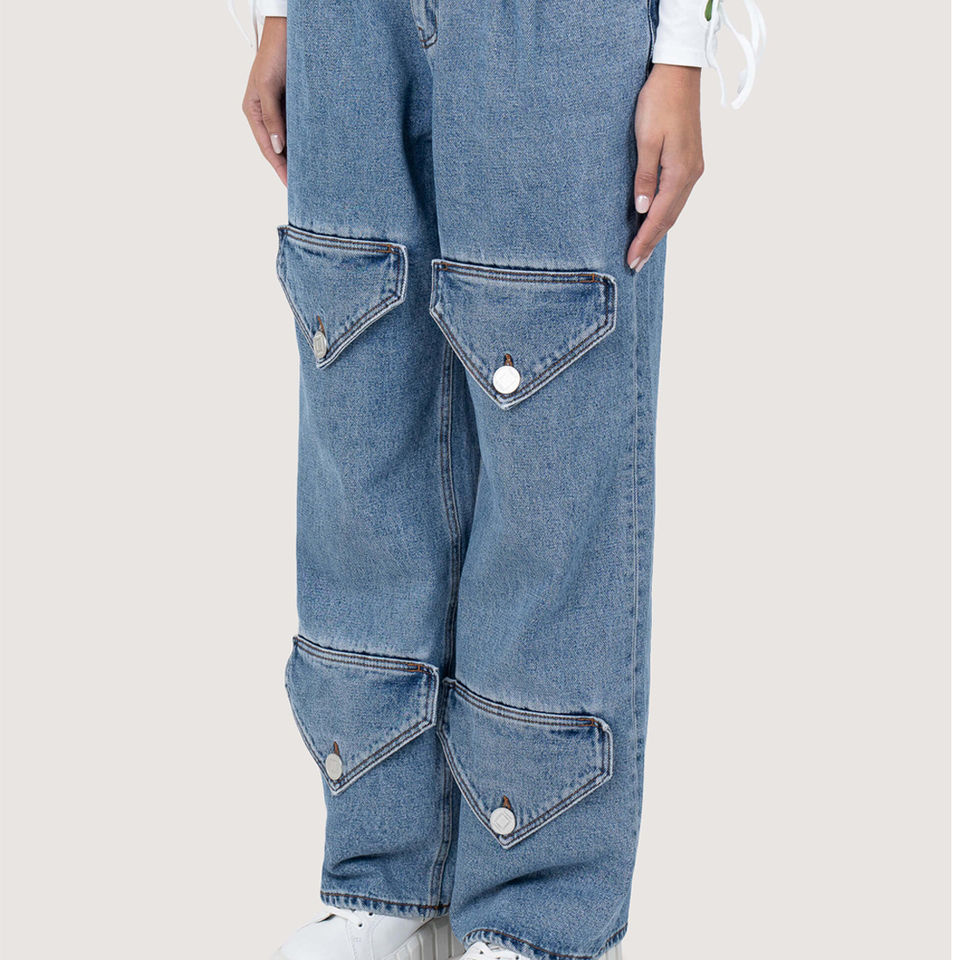 Custom Made Women's Skinny Wide Jeans Pants Washed Gym Wear with Flat Front Style Jeans Pants