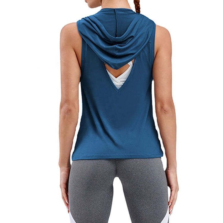 Custom Made Women's Sleeveless Hoodies Solid Color Dyed Cotton Crop Top Vest Gym Workout Hoodie Fitness Training Tank Apparel