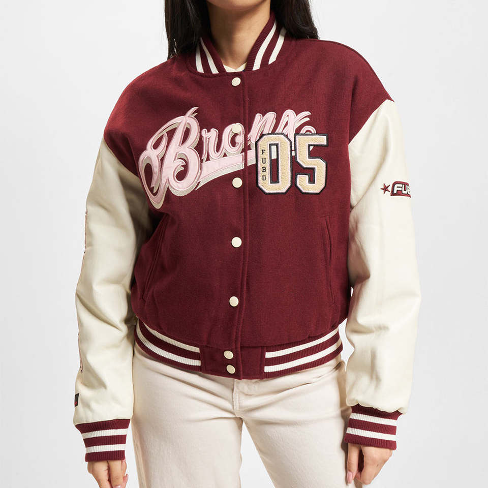 Custom Made Women's Varsity Jacket Wool Body Bright White Leather Sleeves Letterman/Baseball Jacket High Cotton Winter