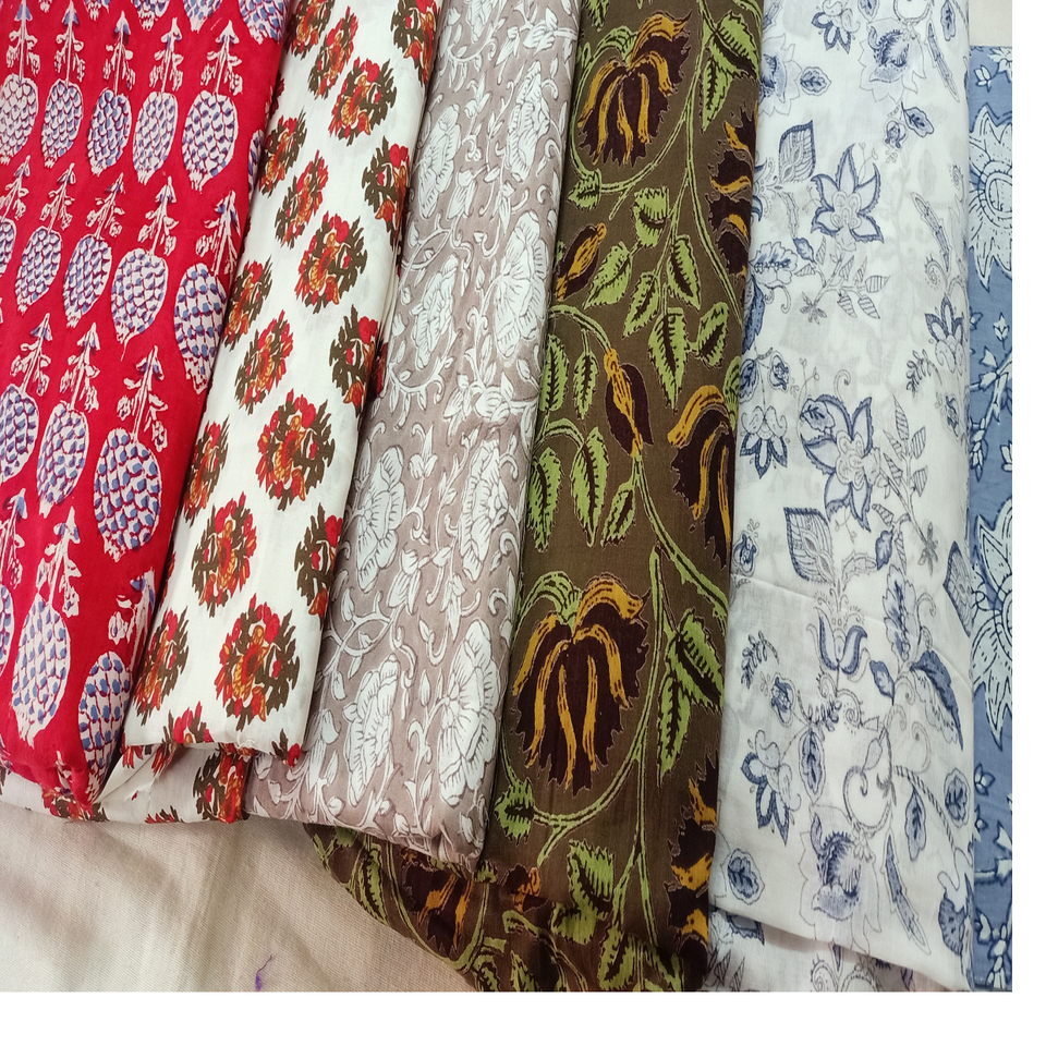Custom Made Woven Lace Block Printed Linen/Cotton Fabrics for Dresses & Resale Assorted Designs