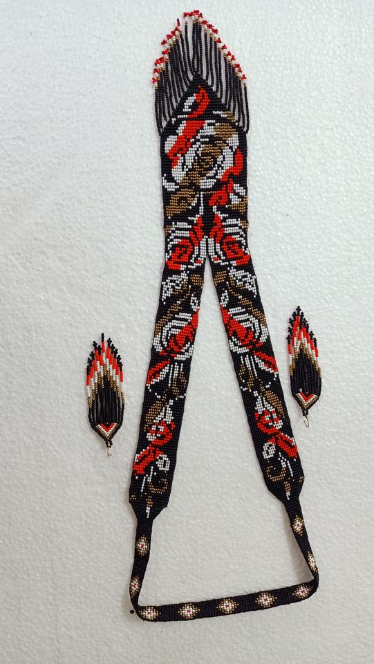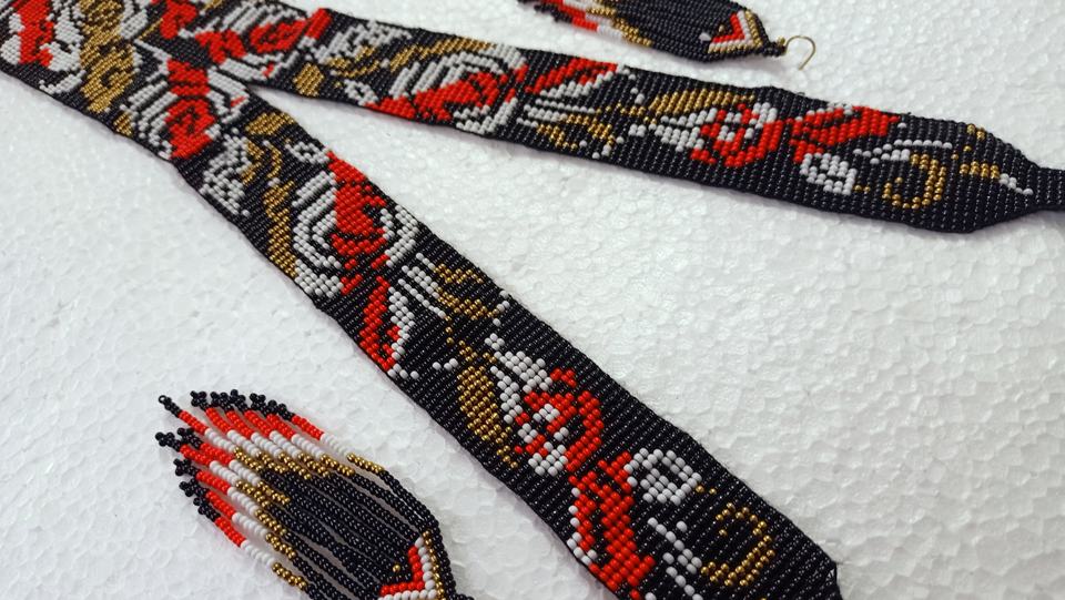 Custom Made in Black & Red Coloured Glass Seed Bead Hand Made Necklace Sets with Matching Earrings for Fashion Accessory Stores