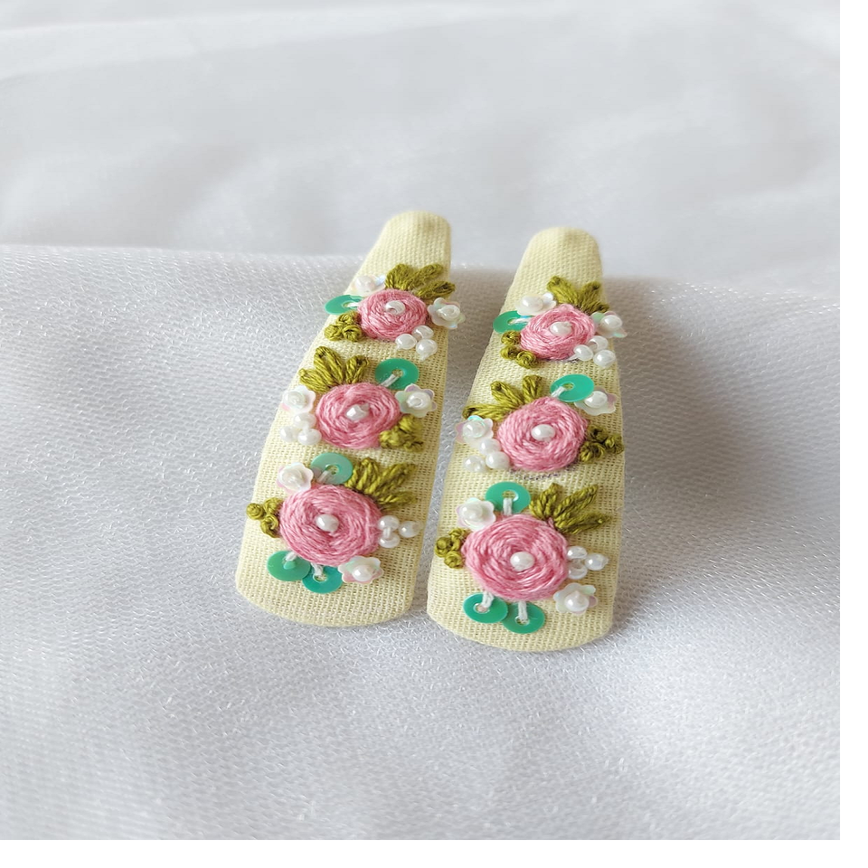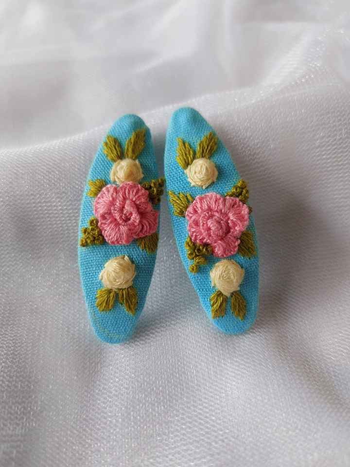 Custom Made in Heart Motif Embroidered Hair Clip Made with Floral Embroidered Patterns Ideal for Resale by Hair Accessory Stores