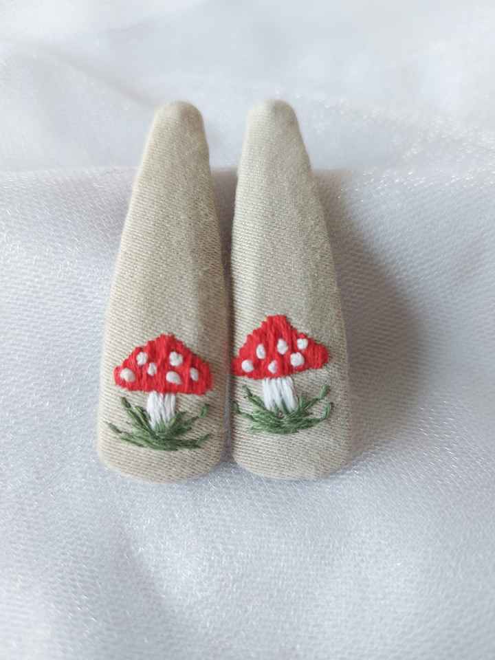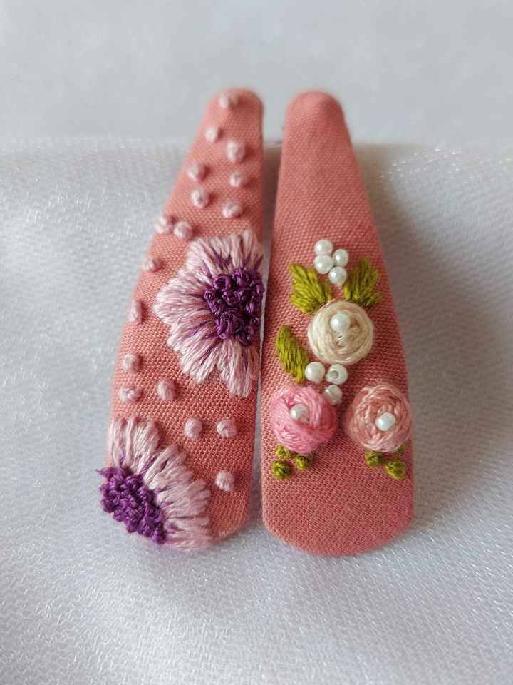 Custom Made on pink Base Fabric Embroidered Hair Clips Made with Floral Embroidered Patterns for Resale by Hair Accessory Stores