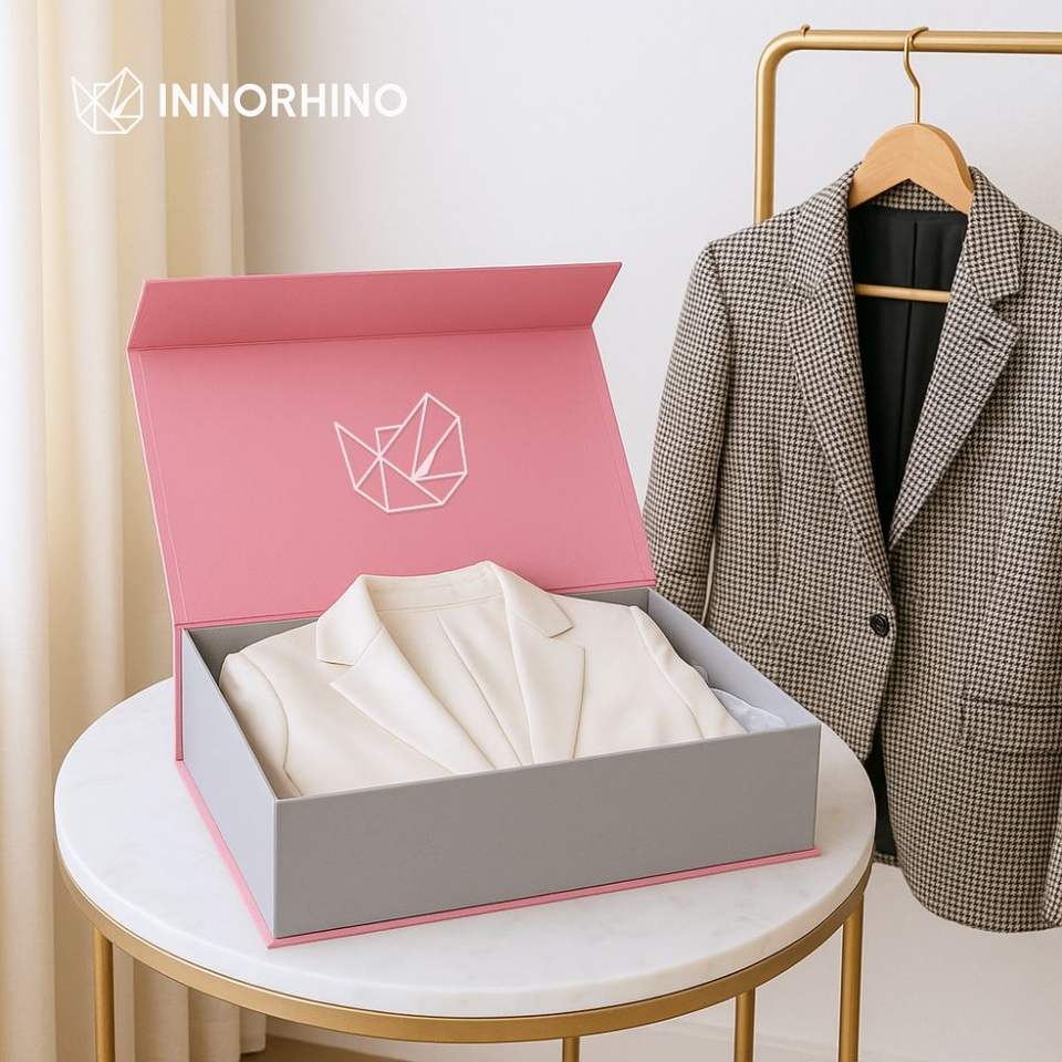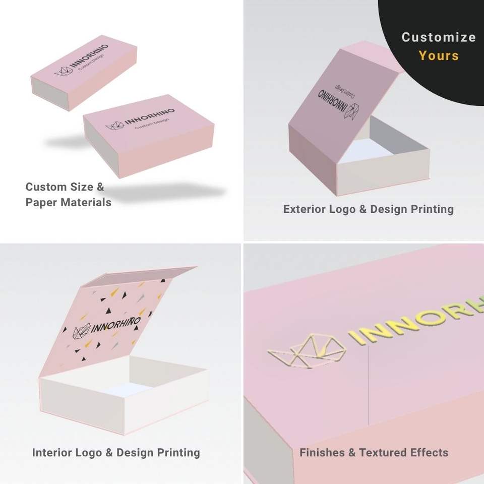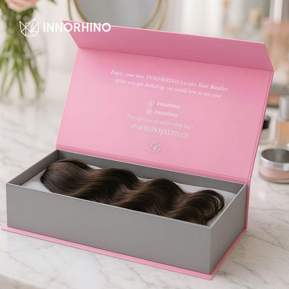 Custom Magnetic Book Style Rigid Gift Box | Pink & Grey Flap Lid Packaging for Wig, Luxury Apparel
