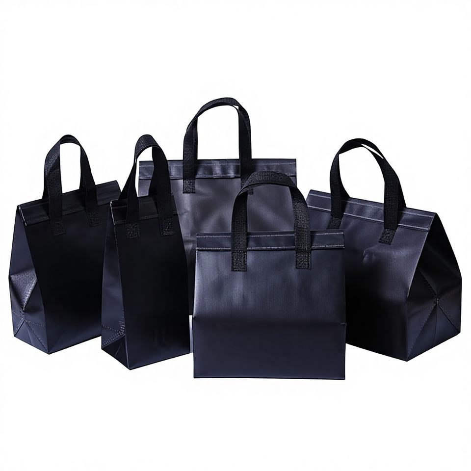 Custom Mailer Brand Non-Woven Aluminum Foil Insulated Takeout Bags Hand Length Handle for Cake Milk Sugar Catering Disposable