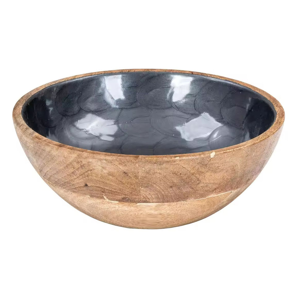 Custom Mango Wood Bowl with Enamel Print Leakproof Large Wooden Bowl Snacks Counter Charcuterie Accessories for Serving & Decor