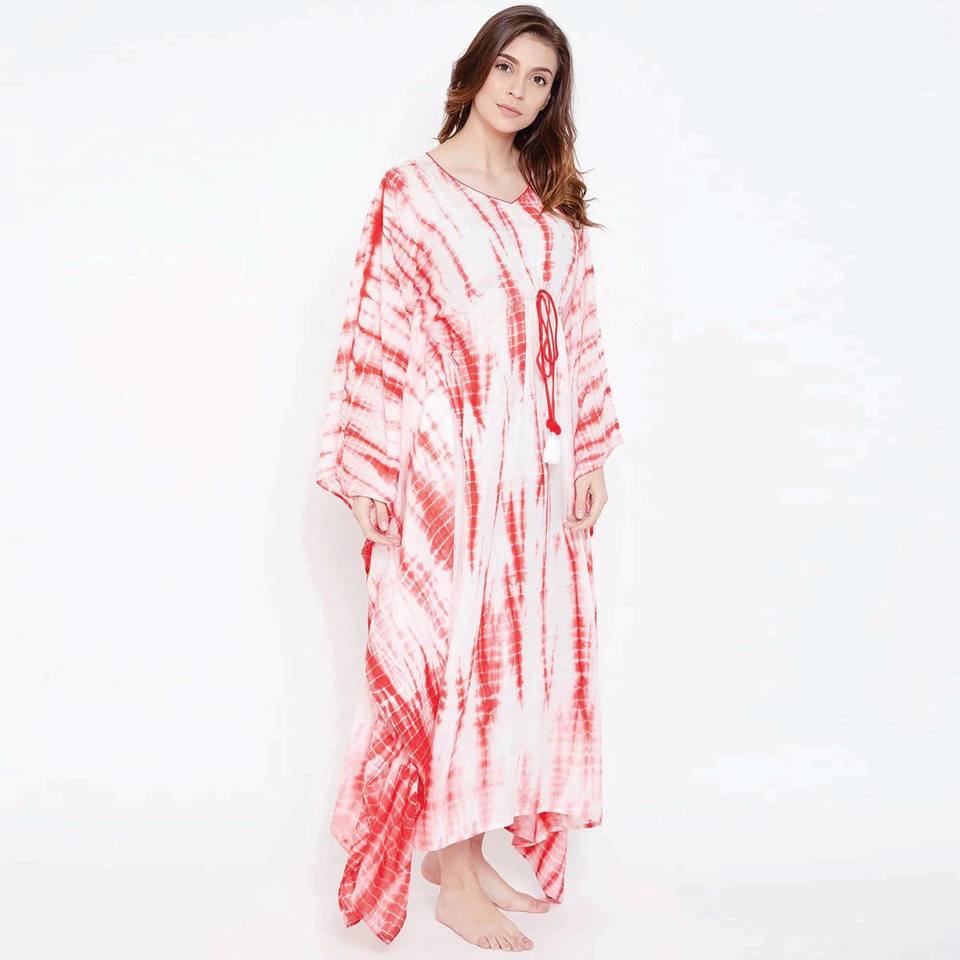 Custom Manufacture Slim Fit 100% Modal Round Neck Short Extended Sleeves Candy Red Shikora Tie-Dye Kaftan