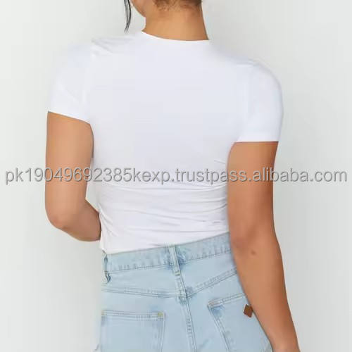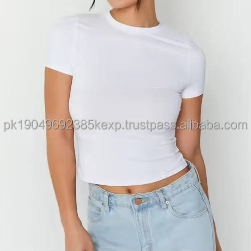 Custom Manufacturer Black White Blanks Tshirts Cotton T-Shirt T Shirt Baby Tees Crop Tops for Women T-148