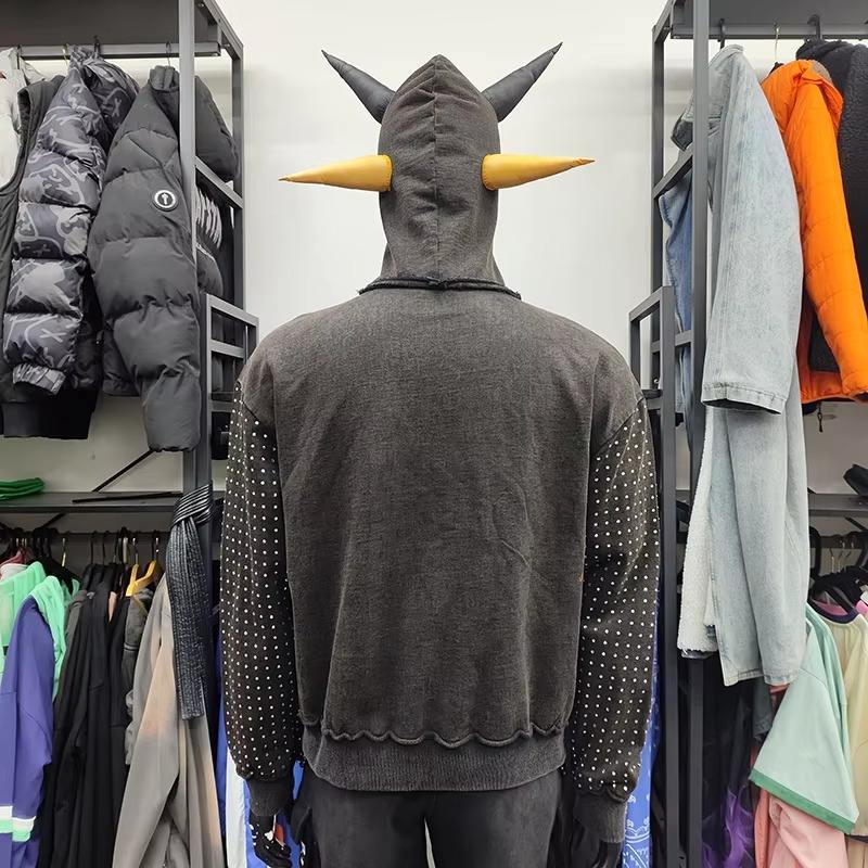 Custom Manufacturer Custom Color French Terry Heavyweight Zipper Jacket Rhinestone Pullover Hoodie Men