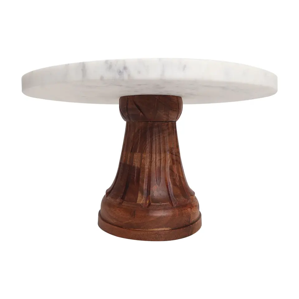 Custom Manufacturer Hand Painted White Marble Cake Stand with Wooden Base Wholesaler Premium Home & Decoration Factory