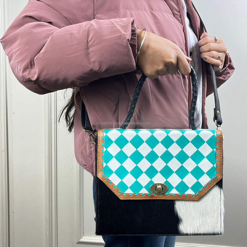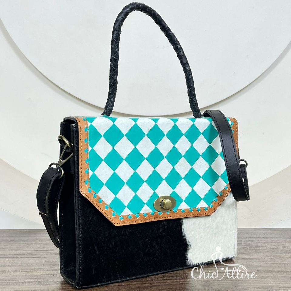 Product name:Hand Tooled Checkered Leather Crossbody Bag