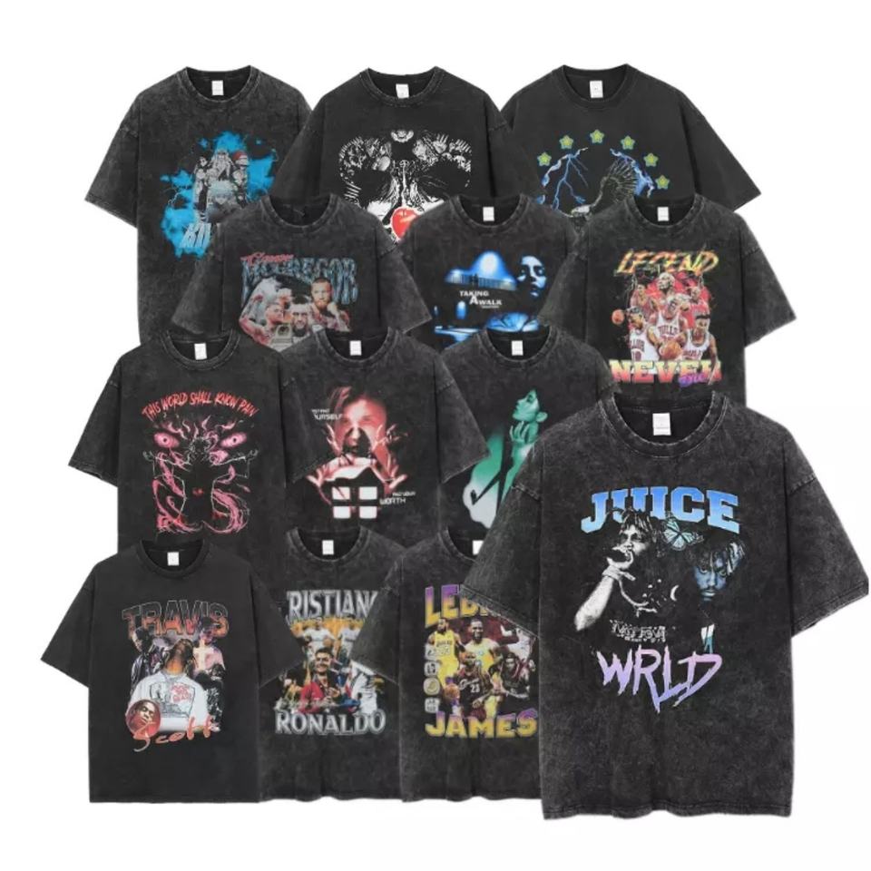 Custom Manufacturer Wholesale Mens High Quality Black t Shirt 100% Cotton t Shirt Printing Graphic Acid Wash t Shirt for Men