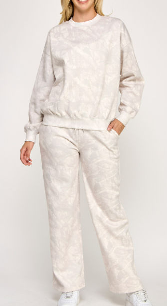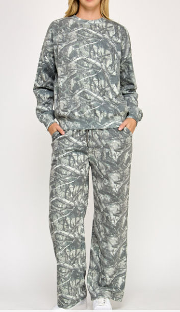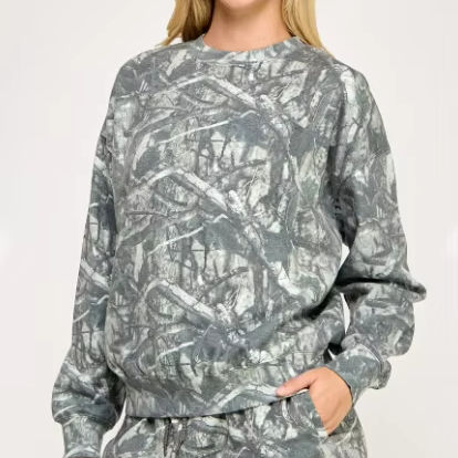 Custom Manufacturer for Women Woodland Camo Fleece Relaxed Fit Crew Neck Sweatshirt Top Shorts Pants Set Pullover Hoodies