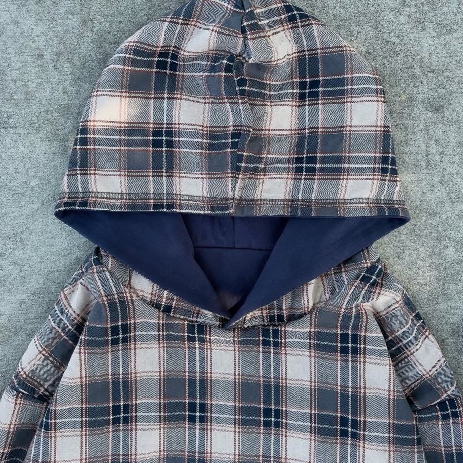 Custom Manufacturer's Double-Layer Reversible Flannel Hoodie Boxy Zipper Plaid Jacket for Men Women 100% Cotton Heavyweight Drop