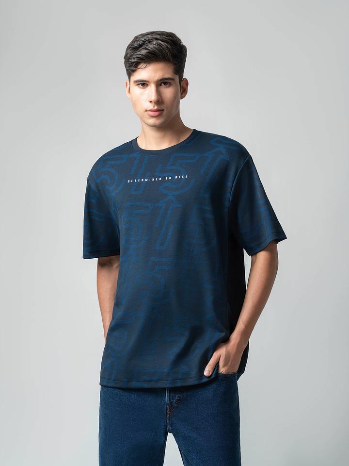 Custom Manufacturer's Light Navy Oversized Men's T-Shirt Made From Supima Cotton Spandex Interlock All-Over Rotary Print